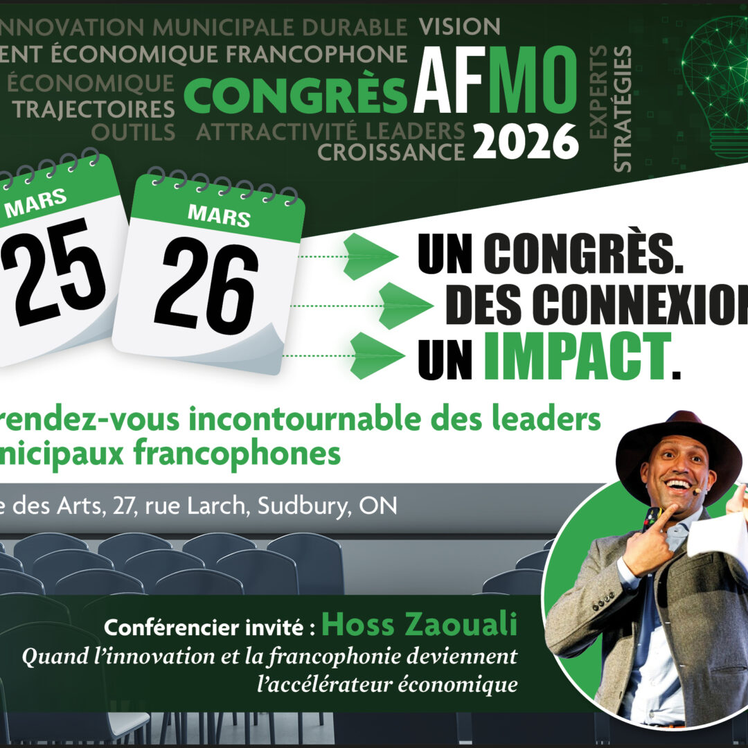 Sudbury, 11 février 2026 - L’Association francophone des municipalités de l’Ontario (AFMO) tiendra son Congrès annuel les 25 et 26 mars 2026 à Sudbury, réunissant des leaders municipaux, des gestionnaires, des partenaires institutionnels et communautaires de partout en Ontario.